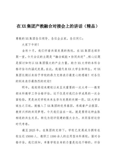 / 【七哥公文】2025年:在XX集团产教融合对接会上的讲话(精品)+更多免费公文+VX:QiGeGongWen2024