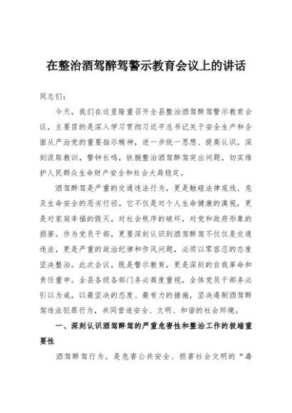/ 【七哥公文】2025年:在整治酒驾醉驾警示教育会议上的讲话+更多免费公文+VX:QiGeGongWen2024