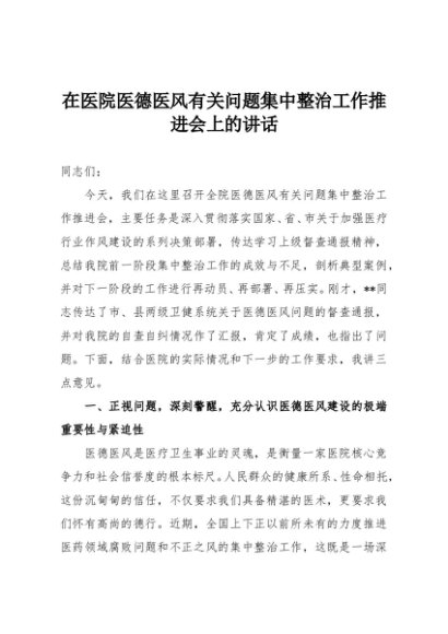 / 【七哥公文】2025年:在医院医德医风有关问题集中整治工作推进会上的讲话+更多免费公文+VX:QiGeGongWen2024