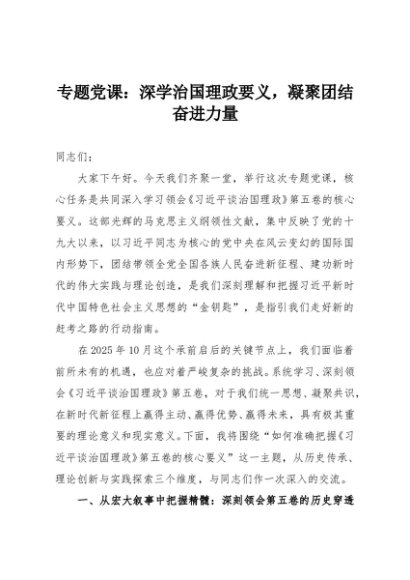 / 【七哥公文】2025年:专题党课:深学治国理政要义,凝聚团结奋进力量+更多免费公文+VX:QiGeGongWen2024