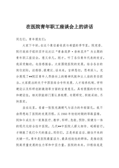 / 【七哥公文】2025年:在医院青年职工座谈会上的讲话+更多免费公文+VX:QiGeGongWen2024