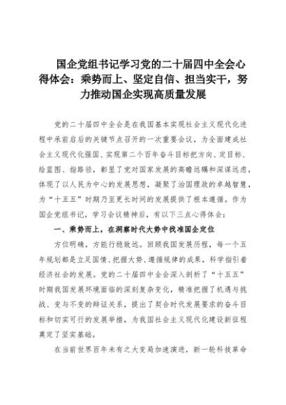 【七哥公文】2025年:国企党组书记学习党的二十届四中全会心得体会:乘势而上、坚定自信、担当实干,努力推动国企实现高质量发展+更多免费公文+VX:QiGeGongWen2024
