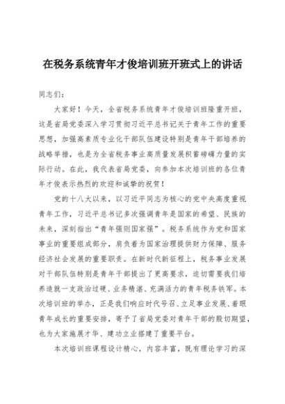 / 【七哥公文】2025年:在税务系统青年才俊培训班开班式上的讲话+更多免费公文+VX:QiGeGongWen2024