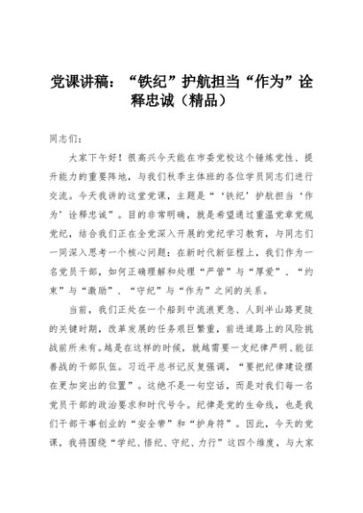 / 【七哥公文】2025年:党课讲稿:“铁纪”护航担当“作为”诠释忠诚(精品)+更多免费公文+VX:QiGeGongWen2024