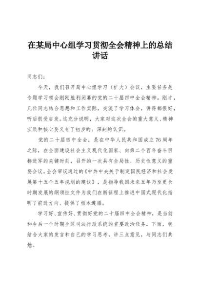 / 【七哥公文】2025年:在某局中心组学习贯彻全会精神上的总结讲话+更多免费公文+VX:QiGeGongWen2024