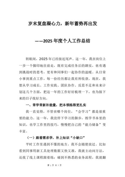 【七哥公文】2025年:2025年度个人工作总结:岁末复盘凝心力,新年蓄势再出发+更多免费公文+VX:QiGeGongWen2024
