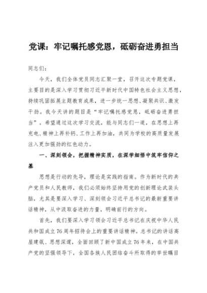 / 【七哥公文】2025年:党课:牢记嘱托感党恩,砥砺奋进勇担当+更多免费公文+VX:QiGeGongWen2024