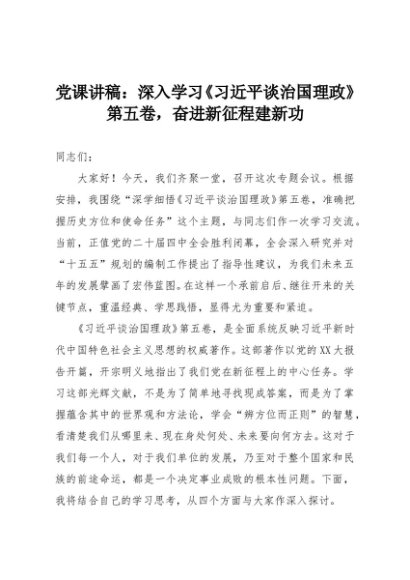 【七哥公文】2025年:党课讲稿:深入学习《习近平谈治国理政》第五卷,奋进新征程建新功+更多免费公文+VX:QiGeGongWen2024