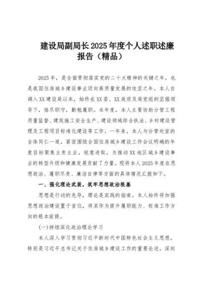 / 【七哥公文】2025年:建设局副局长2025年度个人述职述廉报告(精品)+更多免费公文+VX:QiGeGongWen2024