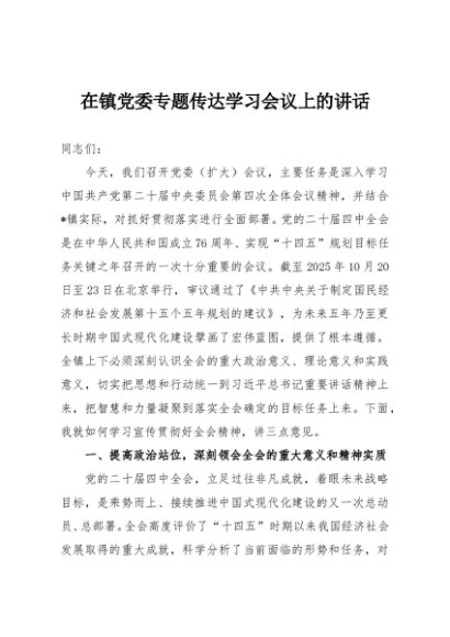 / 【七哥公文】2025年:在镇党委专题传达学习会议上的讲话+更多免费公文+VX:QiGeGongWen2024