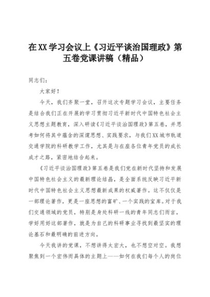 【七哥公文】2025年:在XX学习会议上《习近平谈治国理政》第五卷党课讲稿(精品)+更多免费公文+VX:QiGeGongWen2024