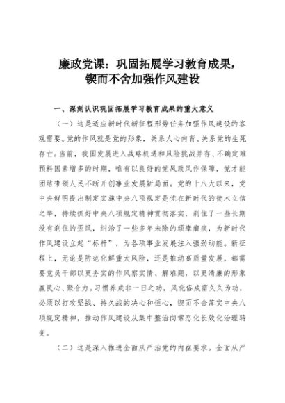 【七哥公文】2025年:廉政党课:巩固拓展学习教育成果,锲而不舍加强作风建设+更多免费公文+VX:QiGeGongWen2024