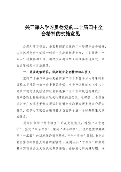 【七哥公文】2025年:关于深入学习贯彻党的二十届四中全会精神的实施意见+更多免费公文+VX:QiGeGongWen2024