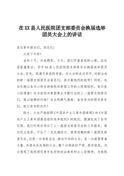 【七哥公文】2025年:在XX县人民医院团支部委员会换届选举团员大会上的讲话+更多免费公文+VX:QiGeGongWen2024