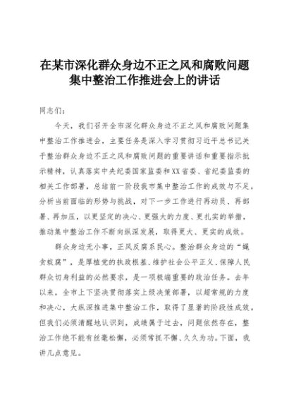 【七哥公文】2025年:在某市深化群众身边不正之风和腐败问题集中整治工作推进会上的讲话+更多免费公文+VX:QiGeGongWen2024