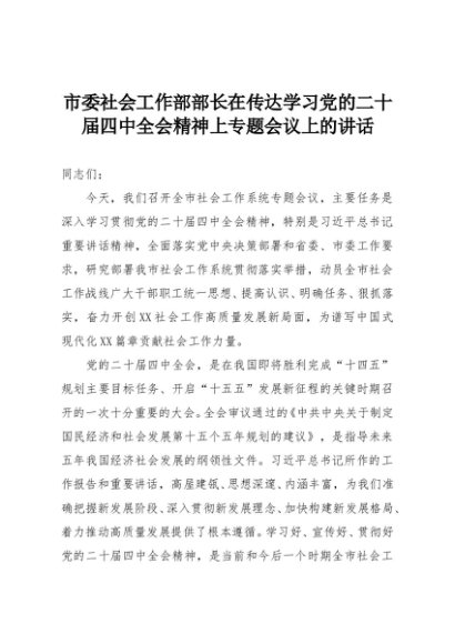 【七哥公文】2025年:市委社会工作部部长在传达学习党的二十届四中全会精神上专题会议上的讲话+更多免费公文+VX:QiGeGongWen2024