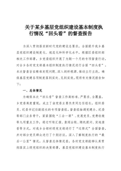 【七哥公文】2025年:关于某乡基层党组织建设基本制度执行情况“回头看”的督查报告+更多免费公文+VX:QiGeGongWen2024