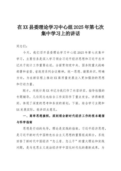 【七哥公文】2025年:在XX县委理论学习中心组2025年第七次集中学习上的讲话+更多免费公文+VX:QiGeGongWen2024