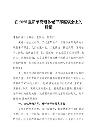 / 【七哥公文】2025年:在2025重阳节离退休老干部座谈会上的讲话+更多免费公文+VX:QiGeGongWen2024