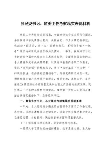 / 【七哥公文】2025年:县纪委书记、监委主任考察现实表现材料+更多免费公文+VX:QiGeGongWen2024