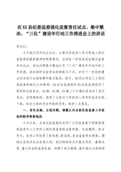 【七哥公文】2025年:在XX县纪委监委强化监督责任试点、集中整治、“三化”建设年行动工作推进会上的讲话+更多免费公文+VX:QiGeGongWen2024