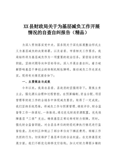 【七哥公文】2025年:XX县财政局关于为基层减负工作开展情况的自查自纠报告(精品)+更多免费公文+VX:QiGeGongWen2024