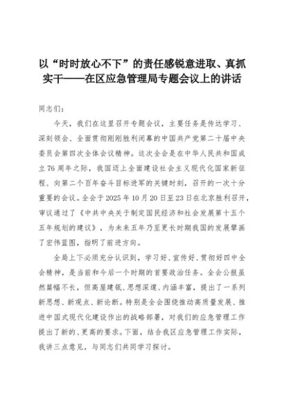 【七哥公文】2025年:以“时时放心不下”的责任感锐意进取、真抓实干——在区应急管理局专题会议上的讲话+更多免费公文+VX:QiGeGongWen2024