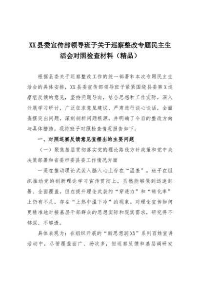 【七哥公文】2025年:XX县委宣传部领导班子关于巡察整改专题民主生活会对照检查材料(精品)+更多免费公文+VX:QiGeGongWen2024