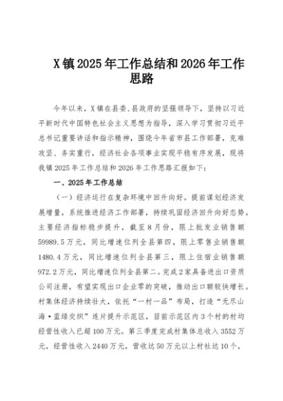 / 【七哥公文】2025年:X镇2025年工作总结和2026年工作思路+更多免费公文+VX:QiGeGongWen2024