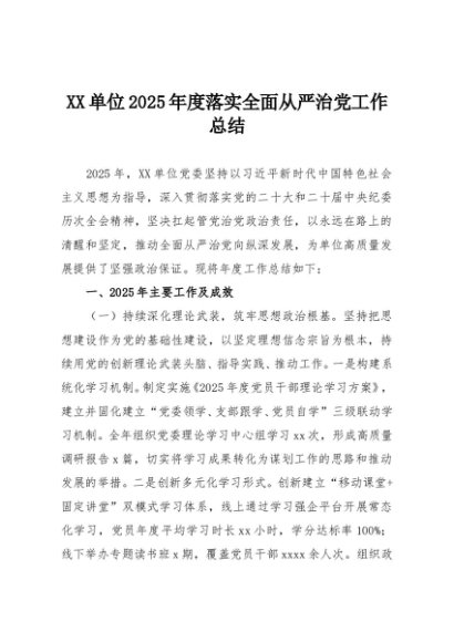 / 【七哥公文】2025年:XX单位2025年度落实全面从严治党工作总结+更多免费公文+VX:QiGeGongWen2024