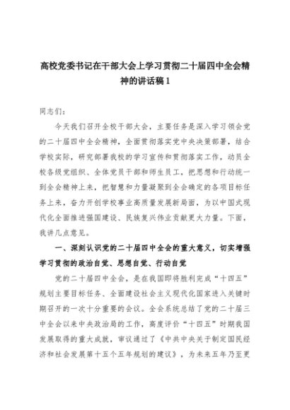 【七哥公文】2025年:高校党委书记在干部大会上学习贯彻二十届四中全会精神的讲话稿1+更多免费公文+VX:QiGeGongWen2024