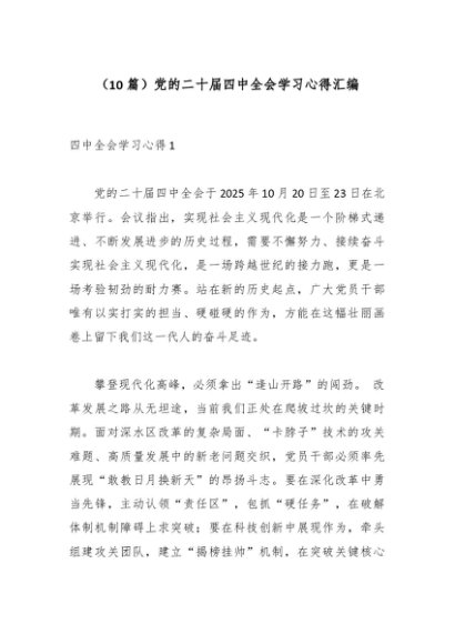 / 【七哥公文】2025年:(10篇)党的二十届四中全会学习心得汇编+更多免费公文+VX:QiGeGongWen2024
