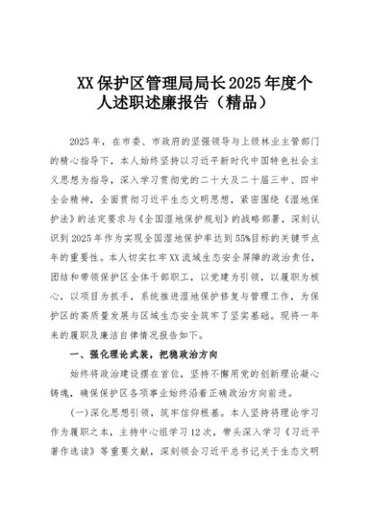 【七哥公文】2025年:XX保护区管理局局长2025年度个人述职述廉报告(精品)+更多免费公文+VX:QiGeGongWen2024