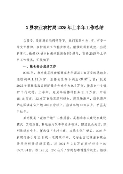 / 【七哥公文】2025年:X县农业农村局2025年上半年工作总结+更多免费公文+VX:QiGeGongWen2024