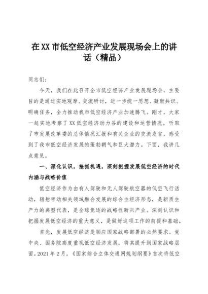 / 【七哥公文】2025年:在XX市低空经济产业发展现场会上的讲话(精品)+更多免费公文+VX:QiGeGongWen2024