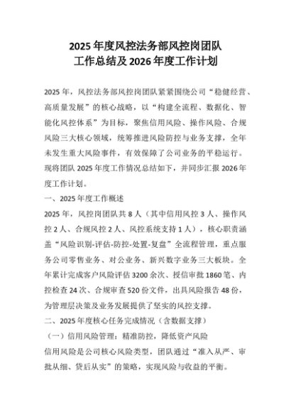 【七哥公文】2025年:2025年度风控法务部风控岗团队工作总结及2026年度工作计划_副本+更多免费公文+VX:QiGeGongWen2024