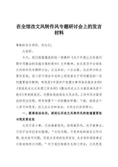 / 【七哥公文】2025年:在全馆改文风转作风专题研讨会上的发言材料+更多免费公文+VX:QiGeGongWen2024