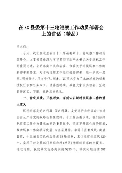 【七哥公文】2025年:在XX县委第十三轮巡察工作动员部署会上的讲话(精品)+更多免费公文+VX:QiGeGongWen2024