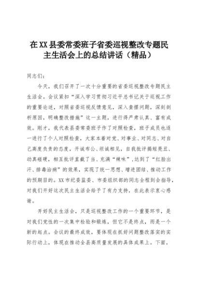【七哥公文】2025年:在XX县委常委班子省委巡视整改专题民主生活会上的总结讲话(精品)+更多免费公文+VX:QiGeGongWen2024