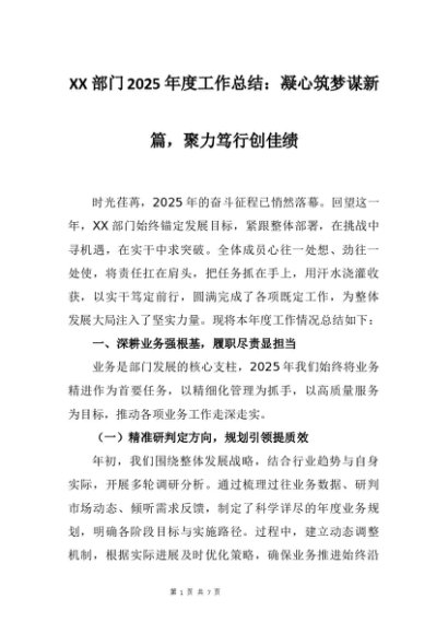 【七哥公文】2025年:XX部门2025年度工作总结:凝心筑梦谋新篇,聚力笃行创佳绩+更多免费公文+VX:QiGeGongWen2024