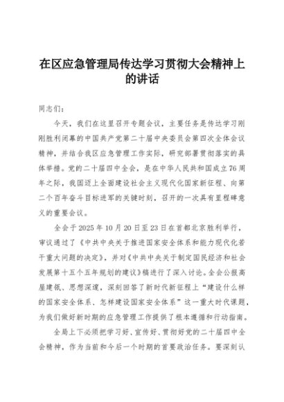 / 【七哥公文】2025年:在区应急管理局传达学习贯彻大会精神上的讲话+更多免费公文+VX:QiGeGongWen2024