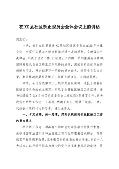/ 【七哥公文】2025年:在XX县社区矫正委员会全体会议上的讲话+更多免费公文+VX:QiGeGongWen2024