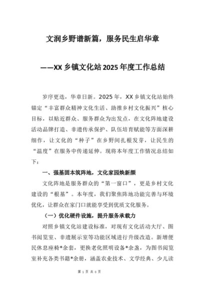【七哥公文】2025年:XX乡镇文化站2025年度工作总结:文润乡野谱新篇,服务民生启华章+更多免费公文+VX:QiGeGongWen2024