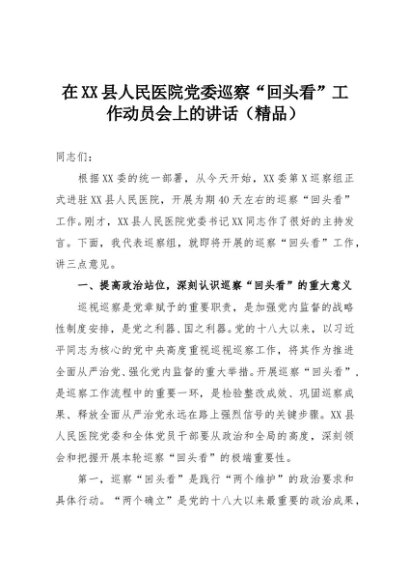 【七哥公文】2025年:在XX县人民医院党委巡察“回头看”工作动员会上的讲话(精品)+更多免费公文+VX:QiGeGongWen2024