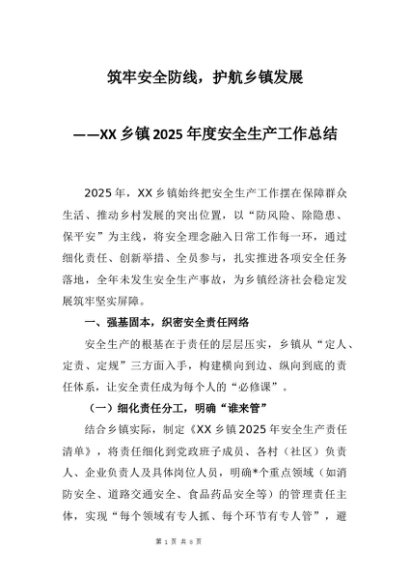 【七哥公文】2025年:XX乡镇2025年度安全生产工作总结:筑牢安全防线,护航乡镇发展+更多免费公文+VX:QiGeGongWen2024