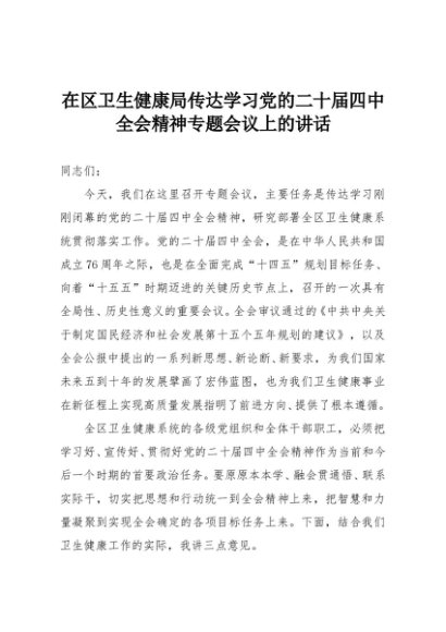 【七哥公文】2025年:在区卫生健康局传达学习党的二十届四中全会精神专题会议上的讲话+更多免费公文+VX:QiGeGongWen2024
