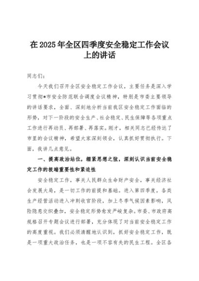 / 【七哥公文】2025年:在2025年全区四季度安全稳定工作会议上的讲话+更多免费公文+VX:QiGeGongWen2024
