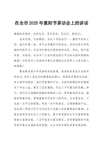 / 【七哥公文】2025年:在全市2025年重阳节茶话会上的讲话+更多免费公文+VX:QiGeGongWen2024