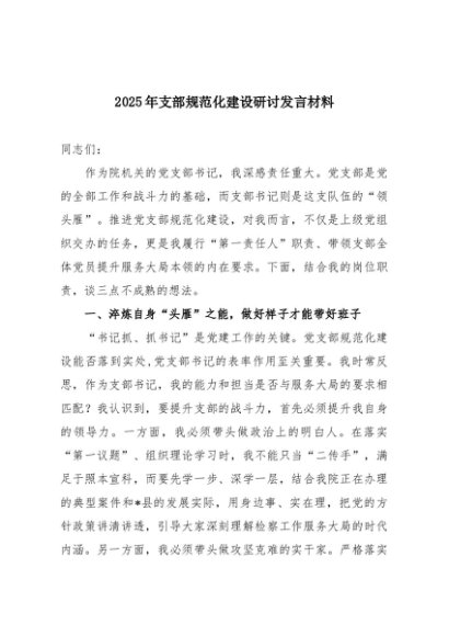 【七哥公文】2025年:2025年支部规范化建设研讨发言材料+更多免费公文+VX:QiGeGongWen2024