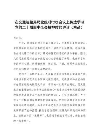【七哥公文】2025年:在交通运输局局党组(扩大)会议上传达学习党的二十届四中全会精神时的讲话(精品)+更多免费公文+VX:QiGeGongWen2024